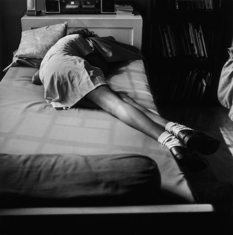 Dayanita Singh’s book Go Away Closer is described as a novel without words, a tale of opposites, connecting personal losses with collective sadness. The series was originally produced for an exhibition, with the images in museum style display cabinets that could be arranged in a multitude of ways. The secondary production in a small photobook of 40 images has, to some extent, confined them, settled the images into a specific configuration. Singh does not add any text or titles to explain the meanings. In an interview Singh has said that she actively ‘withholds’ narrative information (Rafa, 2013). The images are a selection of portraits, empty interiors, and close ups. Some, like the starting image in the book,a young girl lying on a bed, are acutely personal, other like the ending image of wet pavement, seem distanced. There is no story other than an overall feeling of change and despair, loss and mourning. But I am not Indian. Maybe the images would not read that way to someone from her culture. In an interview or the Guardian Singh says, ‘Go Away Closer is what happens between people: I can’t live with you, I can’t live without you’  and also ‘that there was a more interesting way to edit photographs – not through an obvious “theme” but through what’s going on intuitively or subconsciously’ (Malone, 2013).